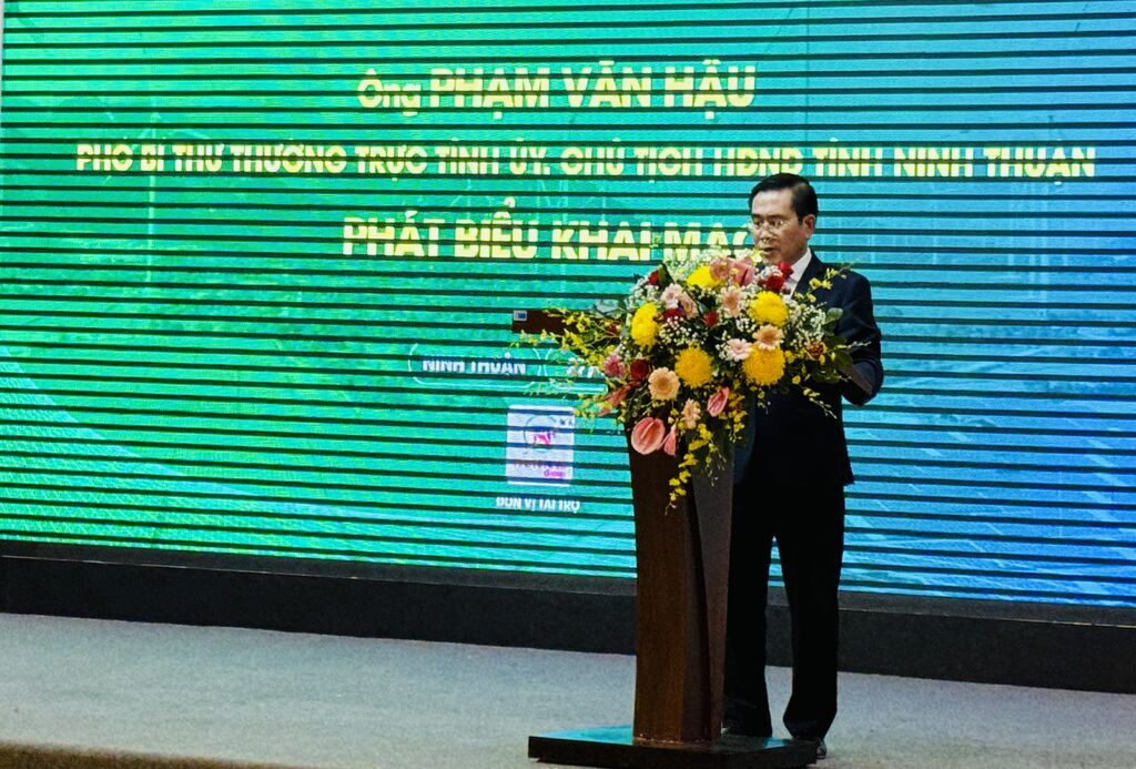 | Le secrétaire adjoint permanent du Comité provincial du Parti et président du Conseil populaire de Ninh Thuân, Pham Van Hâu, prononce son discours lors du colloque. |