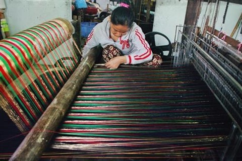 | Chez habiant du village de tissage du brocart My Nghiêp. |