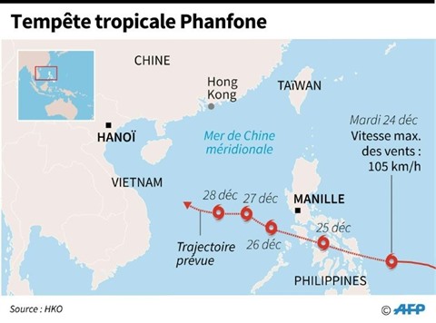 En moyenne, une vingtaine de typhons et tempêtes tropicales balaient chaque année les Philippines, faisant des centaines de morts. Mi-décembre, une violente tempête tropicale ayant balayé le Nord du pays avait fait 13 morts.
