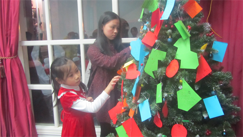 Tous les participants ont ensuite réalisé ensemble des cartes de Noël, sur lesquelles ils ont écrit des vœux. Ils les ont suspendus sur le sapin.