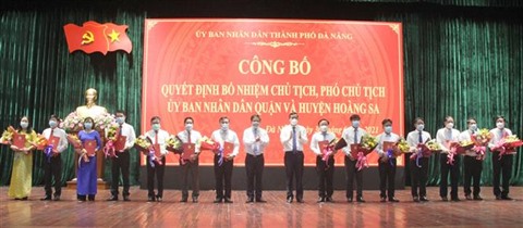 Mercredi 30 juin, le Comité populaire de la ville de Dà Nang (Centre) a organisé une cérémonie pour annoncer la décision du président du Comité populaire municipal sur la nomination des nouveaux présidents et vice-présidents des Comités populaires des arrondissements de la ville et du district insulaire de Hoàng Sa (Paracels).