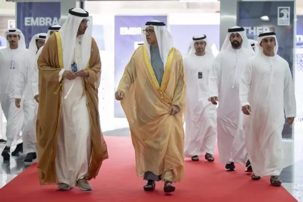 | Le cheikh Mansour d'Abou Dhabi, vice-président des Émirats arabes unis (centre), le 4 novembre 2024 à Abou Dhabi. |