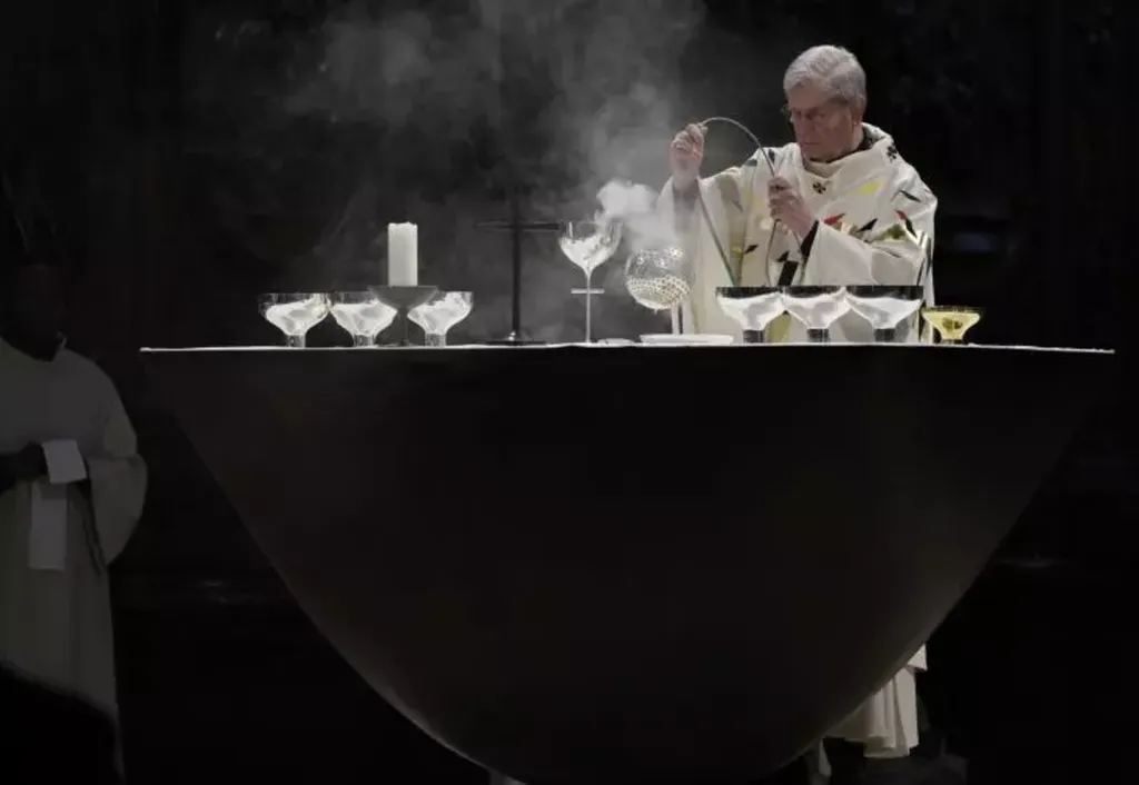 Il a rendu hommage aux "talents déployés sur le chantier de restauration" qui ont permis "que la douleur de l'incendie et les cinq années de séparation soient effacées pour ne laisser que la joie des retrouvailles, la joie d'habiter de nouveau ensemble cette maison commune, la maison de Dieu".