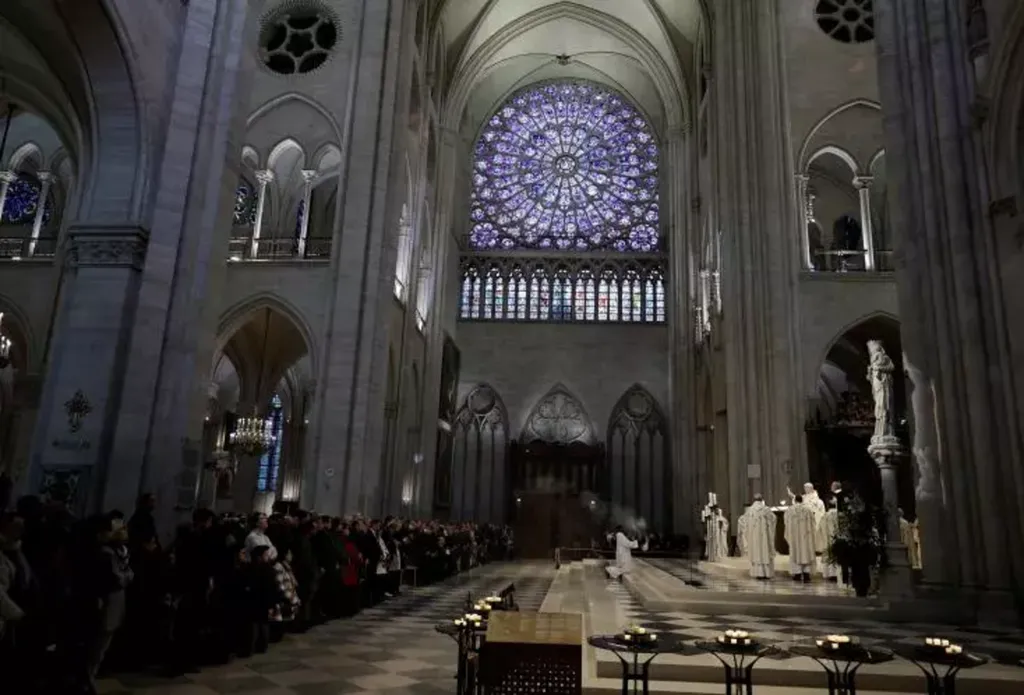 La cathédrale avait été dévastée par les flammes le 15 avril 2019 et, depuis, n'avait plus accueilli ces messes de la Nativité célébrant, pour les chrétiens, la naissance de Jésus.