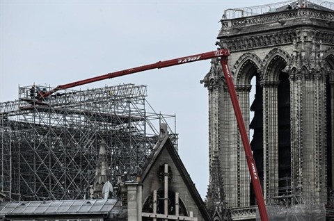 | Début des opérations pour le démontage de l'échafaudage de Notre-Dame de Paris, le 8 juin. |