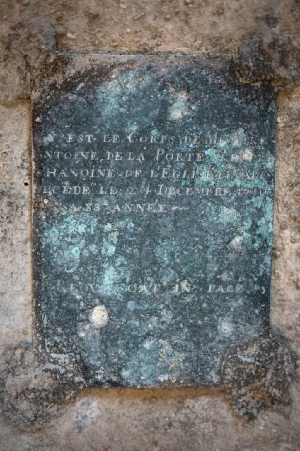 Concernant le second sarcophage, son emplacement était connu, et il contenait un épitaphe, des médailles et une plaque faisant mention du chanoine Antoine de La Porte. Ce dernier, mort à 83 ans en 1710, était un prélat dont un portrait est conservé au Louvre.