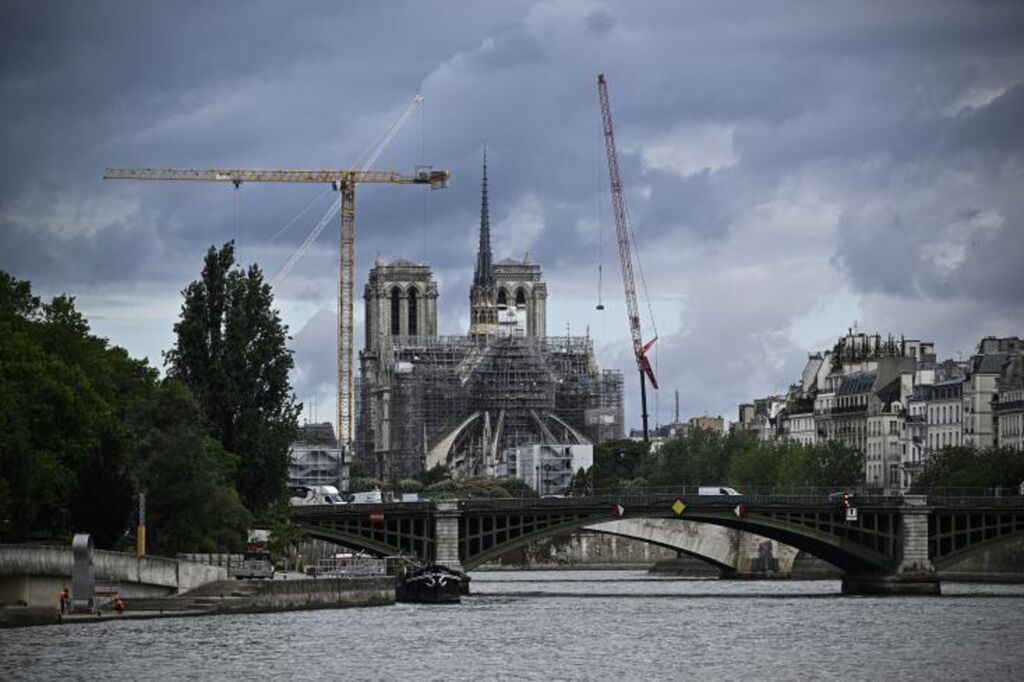 | Notre-Dame de Paris en cours de reconstruction après l'incendie de 2019, le 10 juillet. |