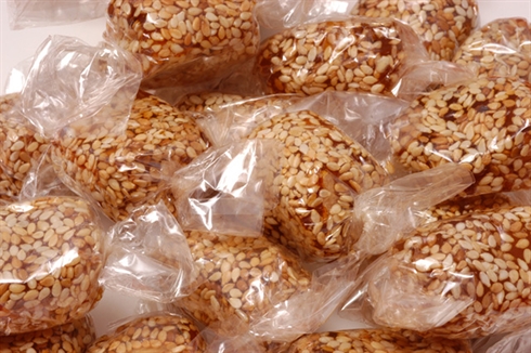 Huiler un moule. En saupoudrer la surface avec la moitié des graines de sésame.