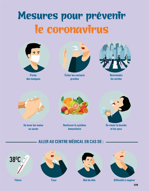 De nombreuses villes et provinces ont multiplié les mesures de prévention. Hanoï a soigneusement préparé le service d’accueil et d’isolement pour 950 Vietnamiens revenant des pays et territoires touchés par le 2019-nCoV. Le président du Comité populaire municipal Nguyên Duc Chung a déclaré : "la ville concentre ses ressources sur la prévention, tout en développant activement une procédure pour faire face aux pires cas causés par l’épidémie".