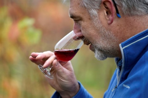 | Le vigneron Simon Day goûte son "English Nouveau" dans son domaine de Ledbury, dans l'ouest de l'Angleterre, le 12 novembre. |