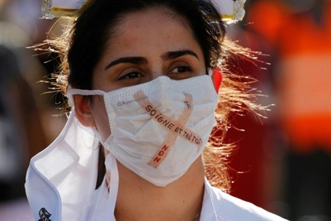 | Une soignante portant un masque avec l'inscription "Soigne et tais-toi, non" pendant une manifestation à Berne le 31 octobre. |