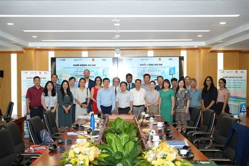 Les participants à la réunion ont donné le coup d’envoi du projet d’amélioration des infrastructures de transport et de l’organisation de la circulation autour des zones scolaires au Vietnam.