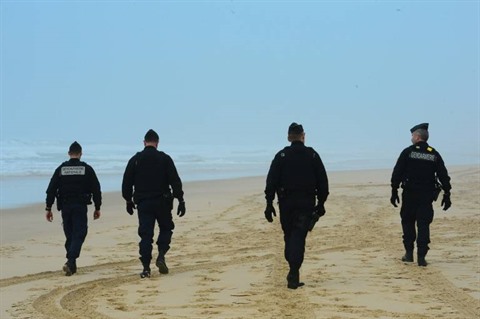 | Patrouille de gendarmes sur une plage près de Lege-Cap-Ferret (Gironde), le 19 mars. |
