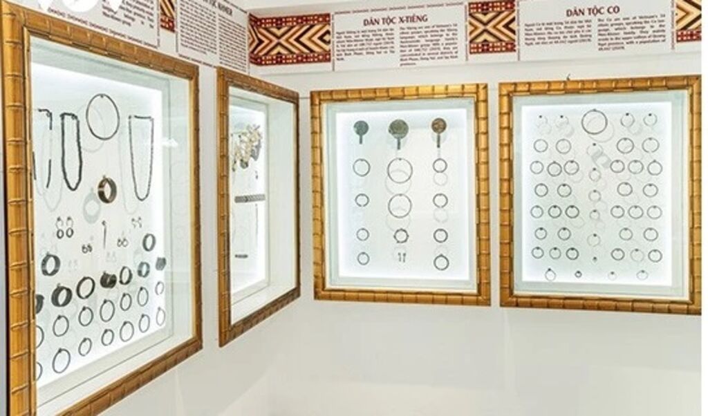 Au Musée des bijoux de 54 ethnies du Vietnam, sont exposés des milliers d’anciens bijoux et de costumes traditionnels de 54 groupes ethniques. Des colliers, des boucles d’oreilles, des bracelets, des bagues, des couronnes et des épingles à cheveux, combinés à des costumes de brocart colorés avec des motifs, ont exprimé les concepts esthétiques, les croyances, les coutumes et les pratiques de chaque groupe ethnique vietnamien du passé à l’heure actuelle.