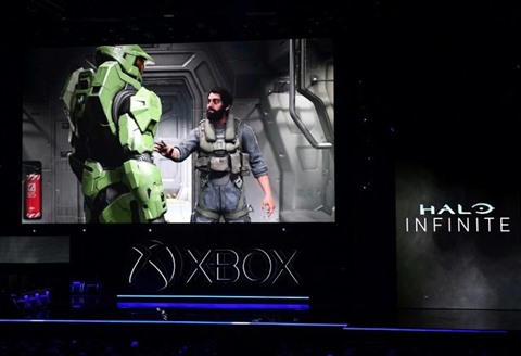 | Le jeu video "Halo : Infinite" développé par Microsoft pour la Xbox lors d'une présentation au salon spécialisé de Los Angeles, le 9 juin 2019. |