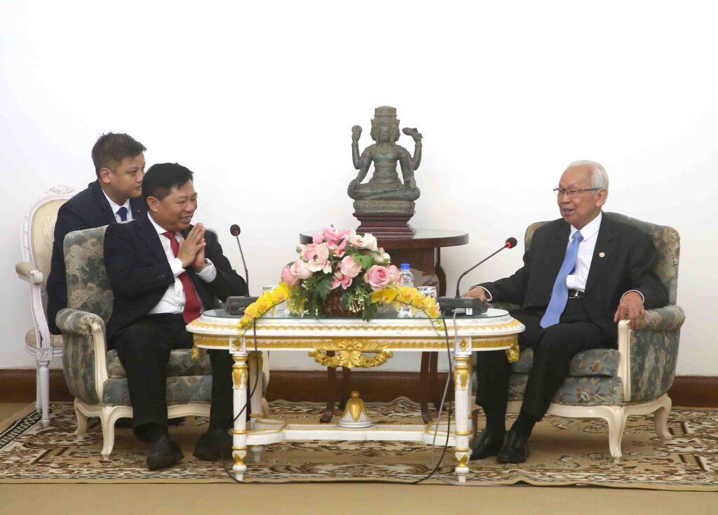 | L'ambassadeur du Vietnam au Cambodge, Nguyên Huy Tang (gauche) et le président du Conseil constitutionnel du Cambodge (CCC), Im Chhun Lim, le 5 avril au Cambodge. |
