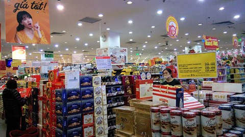 "Les Vietnamiens privilégient les produits vietnamiens". Le slogan est suspendu dans plusieurs grandes chaînes de distribution comme Co.opmart, VinMart, Mega Market ou encore Big C. Dans ces enseignes, 90% des produits qui seront vendus lors du Têt proviennent du Vietnam. Et ils occupent bien souvent la place d’honneur, que ce soient les biscuits Bibica, Huu Nghi, Tràng An et Kinh Dô, les bières de Hanoï et de Saigon, le nuoc mam de Phu Quôc, etc.