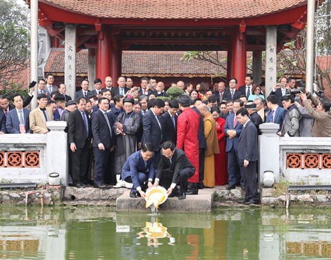 | Rituel consistant à libérer des carpes dans le lac de l’Épée restituée, le 26 janvier à Hanoï. |
