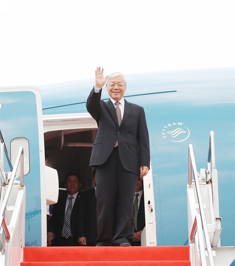 | Le secrétaire général du CC du PCV, Nguyên Phu Trong, à l'aéroport Soekarno- Hatta, le 22 août. |