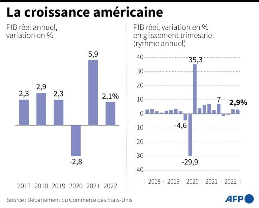 Le président américain Joe Biden devrait commenter ces chiffres à 14h45 (19h45 GMT), lors d'un discours depuis Springfield (Virginie), en grande banlieue de Washington. "Les deux premières années de croissance économique de (Joe Biden) sont les deux premières années les plus fortes de n'importe quel président depuis le président (Bill) Clinton", a salué dans un tweet Shalanda Young, directrice du bureau chargé du budget à la Maison Blanche (OMB).