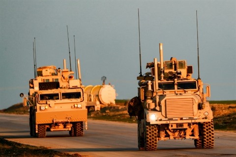 | Des véhicules du corps américain des Marines, près de la ville de Tal Baydar (Nord-Est de la Syrie), le 21 décembre. |