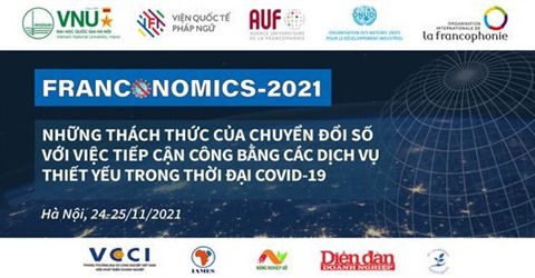 Suite au succès des deux premières éditions, l'Institut francophone international (IFI) relevant de l'Université nationale de Hanoï, en collaboration avec l'Organisation internationale de la Francophonie (OIF), l'Organisation universitaire de la Francophonie (AUF) et l’Organisation des Nations unies pour le développement industriel (ONUDI), organisera pour la troisième fois le Forum Franconomics 2021. Ayant pour thème "Les défis de la transformation numérique avec un accès équitable aux services essentiels à l'ère COVID-19", il se tiendra les 24 et 25 novembre sous deux formes, en présentiel à Hanoï et en ligne.