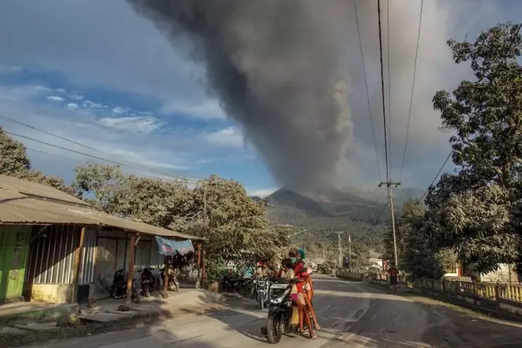 | Des villageois fuient l'éruption du volcan Lewotobi Laki-Laki, le 5 novembre à East Flores, dans l'Est de l'Indonésie. |