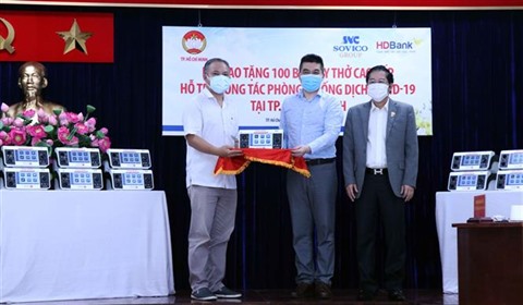 | Remise symbolique des respirateurs offerts par le groupe SOVICO et la banque HDBank, à Hô Chi Minh-Ville. |