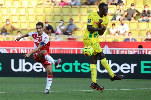 | L'AS Monaco de Wissam Ben Yedder à l'attaque contre le FC Nantes de Dennis Appiah, opposés à Louis II, le 13 septembre 2020, vont lancer la nouvelle saison de L1. |