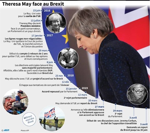 Les députés britanniques ont rejeté trois fois l'accord de retrait qu'elle avait négocié avec les dirigeants de l'UE, et son gouvernement s'est lancé la semaine dernière dans des tractations de dernière minute avec le Labour, principal parti d'opposition.