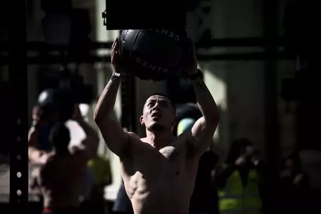 "C'est un peu de torture, mais surtout beaucoup de fun", lâche exténué et ravi Maxime, étudiant de 22 ans, tout juste sorti de l'ultime épreuve de la compétition, le "wall ball", qui consiste à lancer cent fois une balle de 6 kilos sur une cible en hauteur.