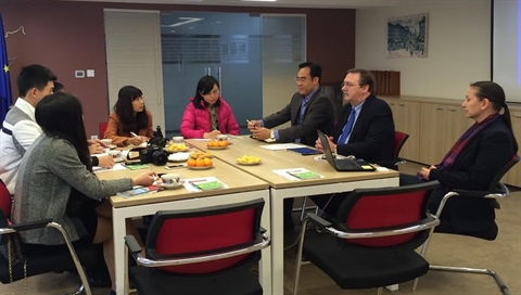 | L’ambassadeur de Hongrie au Vietnam, Csaba Öry (2e à droite), lors d'une conférence de presse, le 22 décembre à Hanoi. |