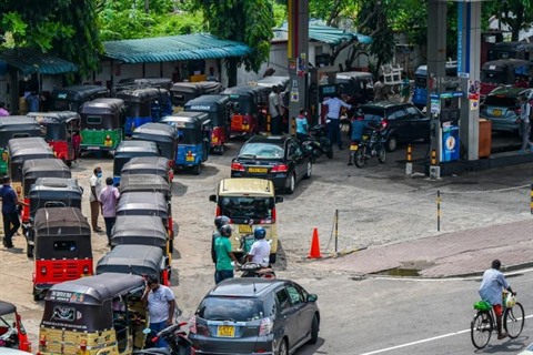 | Des automobilistes font la queue devant une station-services de Colombo, le 2 mai au Sri Lanka |