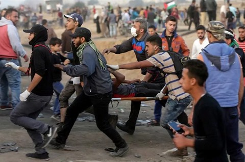Parmi les blessés par balles figurent deux journalistes, a indiqué le syndicat des journalistes palestiniens, une semaine après la mort de l'un de leur confrère. Depuis le début des protestations, 34 Palestiniens ont été tués par les forces de sécurité israéliennes, selon le ministère de la Santé à Gaza.
