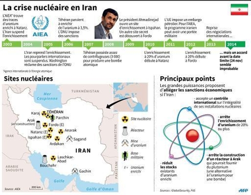 | La crise nucléaire iranienne, chronologie, carte des sites et mesures pour un premier accord. |
