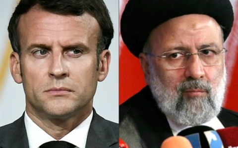 | Photomontage du président français Emmanuel Macron (gauche) et du président iranien Ebrahim Raïssi. |