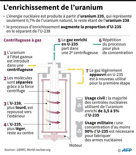 À 4,5%, le taux d'enrichissement est encore loin des 90% qui permettraient d'envisager la production d'une bombe atomique.