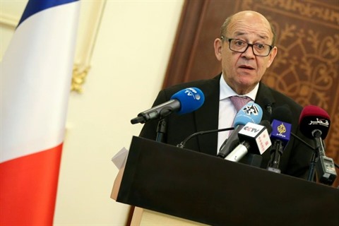 | Le ministre français des Affaires étrangères Jean-Yves Le Drian à Doha, au Qatar, le 15 juillet 2017. |