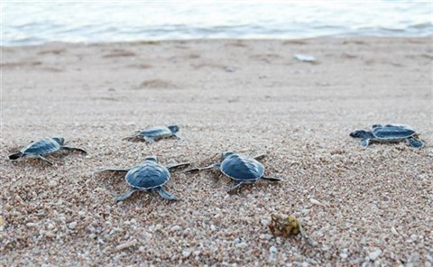 | Des bébés tortues sont relâchées à la mer dans le Parc national de Núi Chúa. |