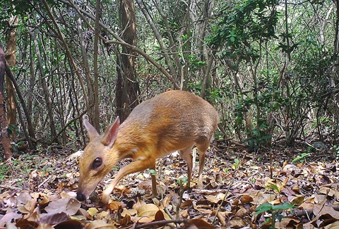 | Un chevrotain à dos argenté (Tragulus versicolor) à Núi Chúa. |