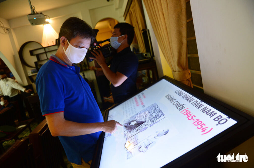 | Les visiteurs regardent des documents au musée intelligent, qui conserve des récits historiques sur les opérations et les souvenirs des Commandos de Saigon (Biêt dông Sai Gon) à Hô Chi Minh-Ville. |