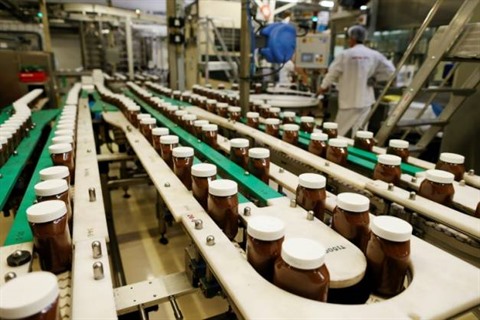 | L'usine Nutella de Villers-Ecalles (Seine-Maritime), ici le 27 janvier, la plus grande du monde, produit 800.000 pots par jour. |