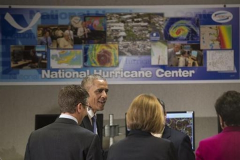 | Barack Obama visite le Centre national des ouragans (NHC) à Miami, le 28 mai. |