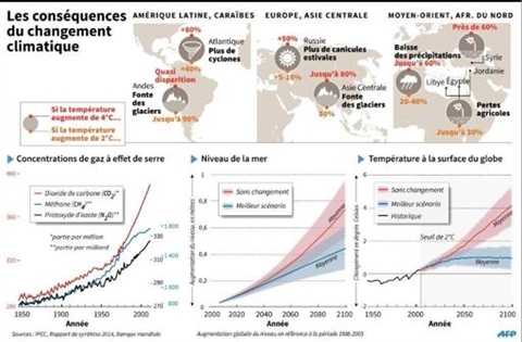 | Les effets du réchauffement climatique par régions dans le monde, selon le plus récent rapport de la Banque mondiale. |