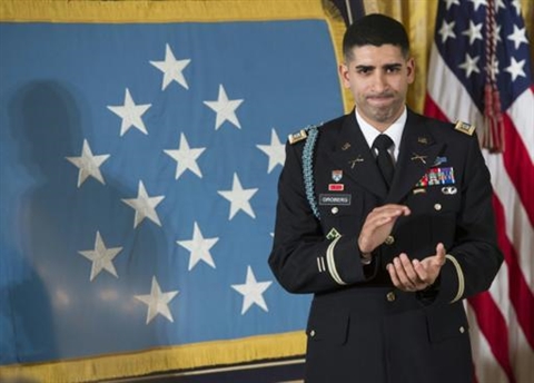 "Nous décorons cet ancien combattant américain dont l'histoire, comme celle de tant d'autres soldats blessés, témoigne non seulement de son héroïsme sur le champ de bataille mais aussi sa ténacité et sa force, après son retour", a-t-il ajouté lors d'une cérémonie dans les salons de la Maison Blanche.