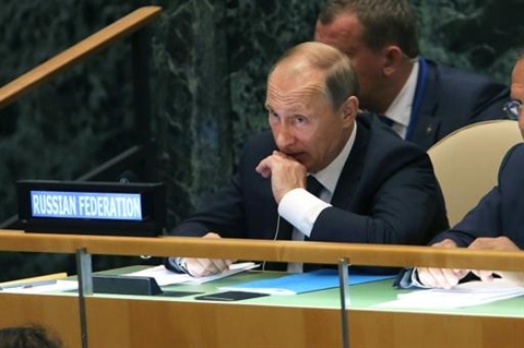 | Le président russe Vladimir Poutine au siège de l'ONU à New York, le 28 septembre |