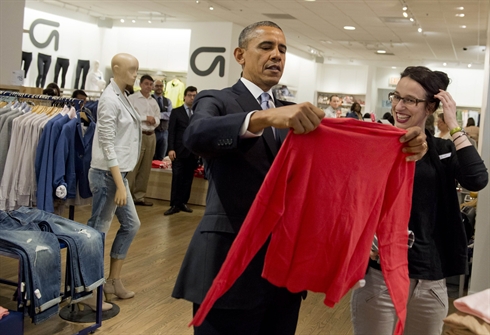 | Le président américain Barack Obama fait du shopping pour sa femme et ses filles dans un magasin Gap à New York. Photo : AFP/VNA/CVN |