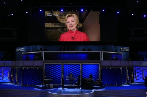 | Hillary Clinton s'adresse à la convention démocrate de Philadelphie par vidéoconférence, le 26 juillet. |