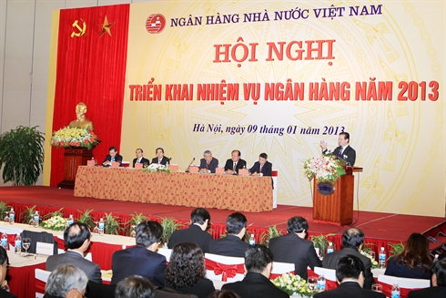 | Le Premier ministre Nguyên Tân Dung à la conférence sur la mise en œuvre les tâches pour les banques en 2013. |