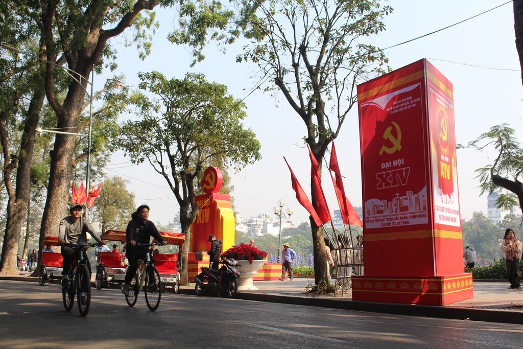 | À l’occasion du XIVe Congrès national du Parti communiste du Vietnam, Hanoï s’est illuminé de drapeaux et de fleurs, dans une atmosphère festive et solennelle. |